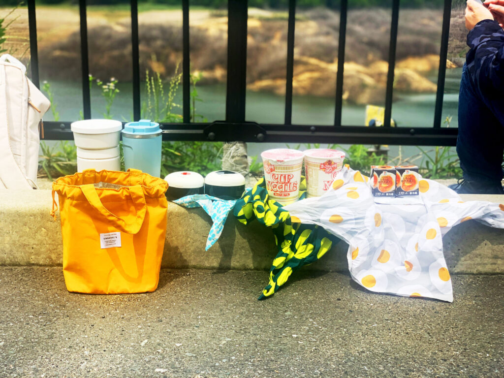 自然の中で食べるラーメン♪