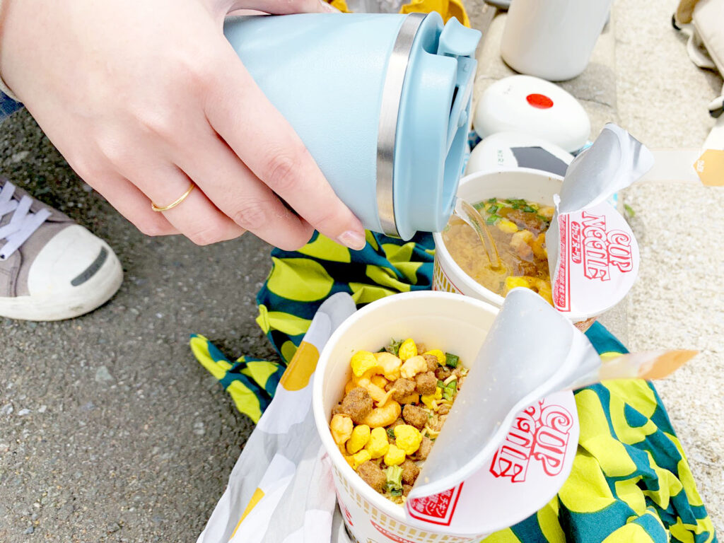 大自然の中でのラーメンは